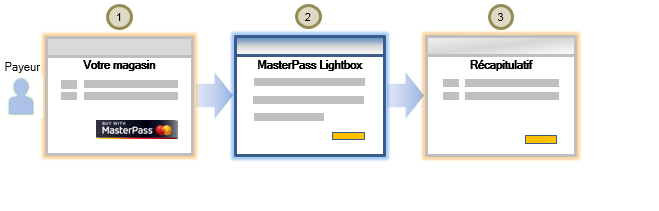 - Un payeur navigue sur le site de votre magasin, sélectionne un ou plusieurs produits et clique sur PAYER AVEC Masterpass sur la page de paiement.